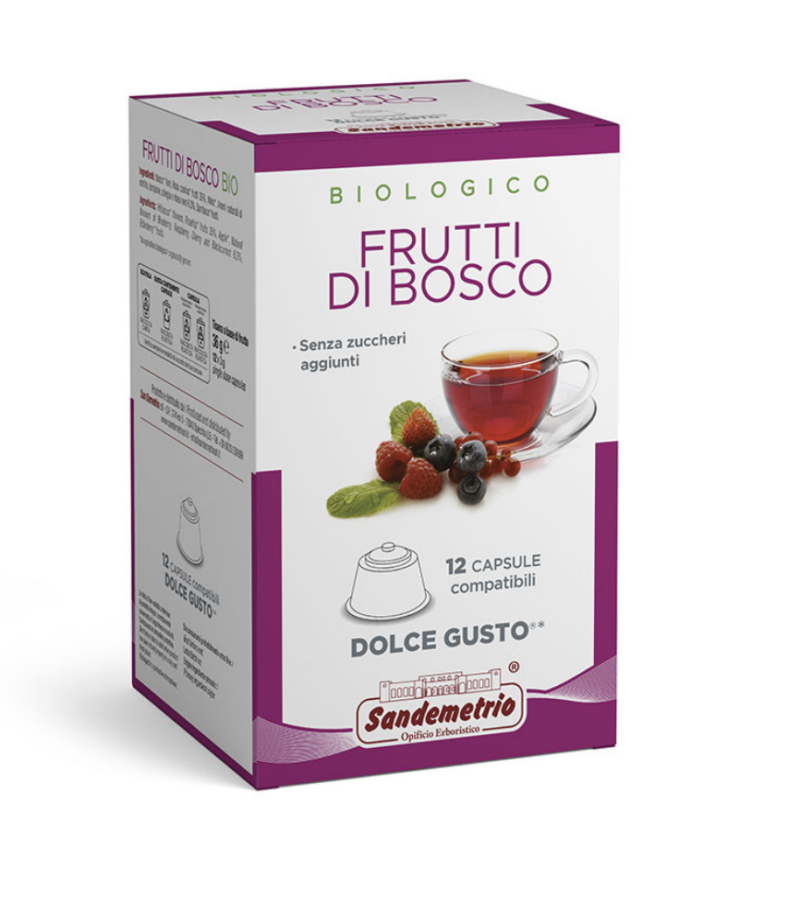Ingredienti: Ibisco fiori, Rosa canina frutti, Mela, Aromi naturali di mirtillo, lampone, ciliegia e ribes nero, Sambuco frutti.